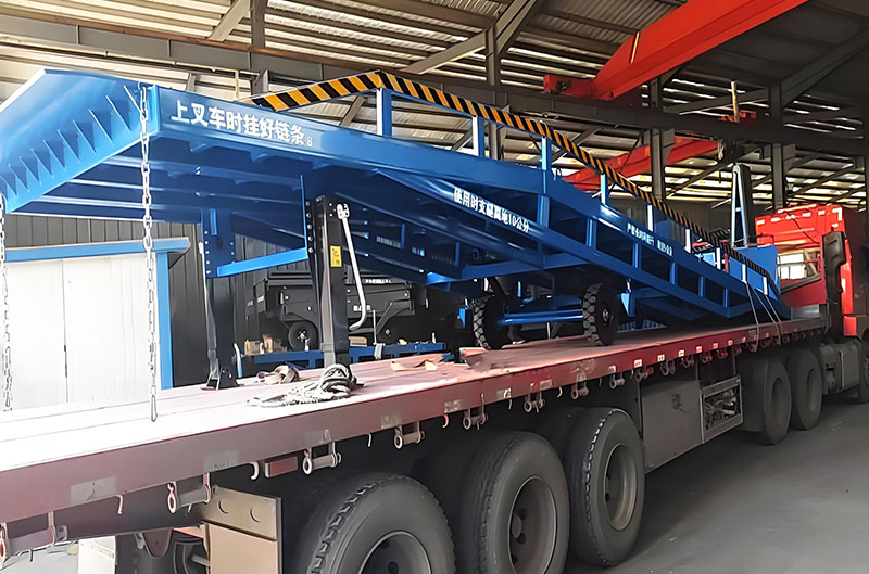 移動(dòng)式登車橋的主要作用是,在地平面與車廂之間搭起一座橋,有了它,叉車能直接從地面攜帶貨物駛?cè)肫囓噹麅?nèi)部,進(jìn)行批量裝卸作業(yè)。使用時(shí),前板架在貨車車廂上,起到承載重量的作用,減少了貨物重量對(duì)液壓登車橋的壓力,了液壓登車橋的使用壽命,從而達(dá)到長(zhǎng)期使用的目的。